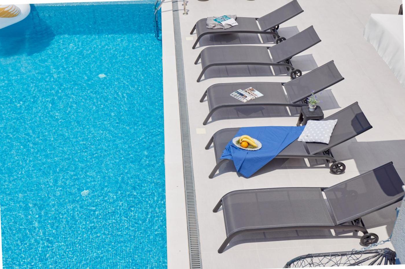Deluxe Studio. This studios standout feature is the pool with a view. Meals can be prepared in the well-fitted kitchen, which is fitted with a refrigerator, kitchenware, a microwave and a tea and coffee maker. This air-conditioned studio is comprised of a flat-screen TV with cable channels, a private bathroom as well as a terrace with sea views. The unit has 1 bed. ;